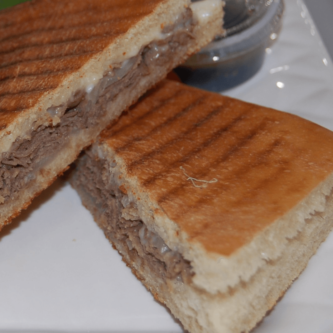 Thinly Sliced Beefsteak Sauteed With Onions Topped With Melted Mozzarella Cheese On Our Homemade Panini Bread, Served With A Side Salad