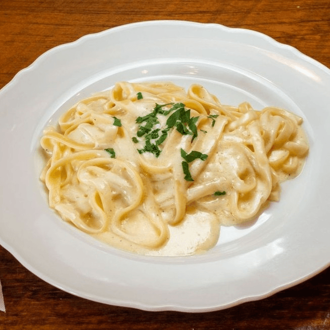 Fettucini Pasta With White Cream And Pecorino Romano Cheese