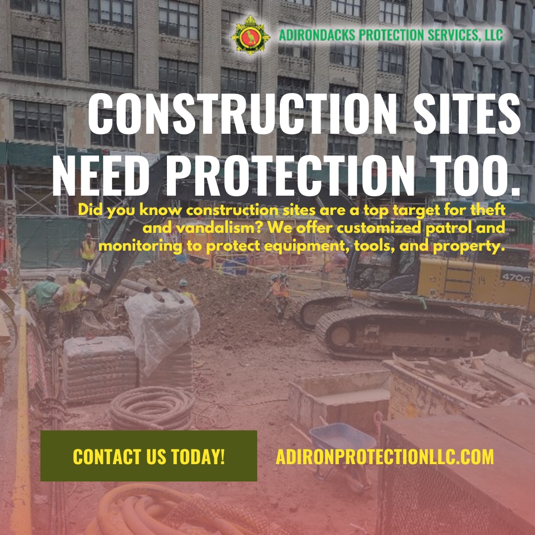 At Adirondacks Protection Services, we specialize in safeguarding construction sites from start to finish—protecting valuable equipment, materials, and personnel around the clock. Our construction site security solutions are designed to deter theft, prevent trespassing, and ensure compliance with safety regulations. Our services include: 24/7 Unarmed Guard Presence: Trained officers patrol and monitor all access points, ensuring only authorized personnel enter. Mobile Patrols & Perimeter Checks: Routine sweeps to detect suspicious activity, especially during off-hours and weekends. Access Control & Visitor Management: Verify worker credentials and manage deliveries to keep your site organized and secure. Overnight Watch & Fire Watch Services: Peace of mind when your team clocks out—with vigilant protection against accidents and arson risks. Incident Reporting & Daily Logs: Detailed records of guard activity, site conditions, and any unusual events delivered to your inbox. Whether your build is residential, commercial, or industrial, we adapt our approach to suit the terrain, timeline, and threat profile of every job site.